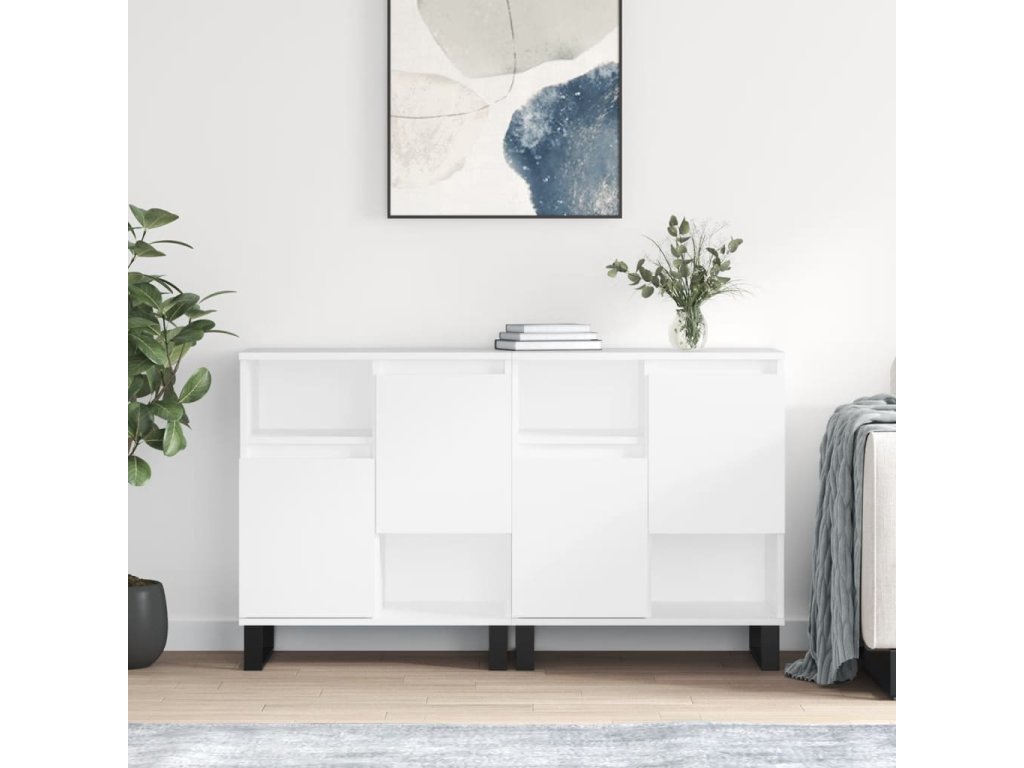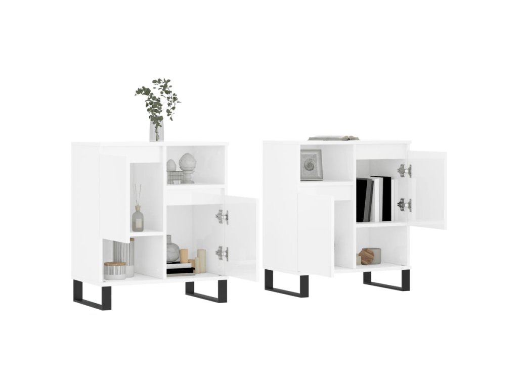 Příborníky 2 ks bílé s vysokým leskem kompozitní dřevo
