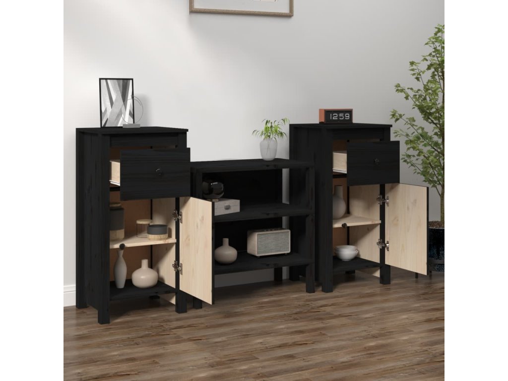 Příborníky 2 ks černé 40 x 35 x 80 cm masivní borové dřevo