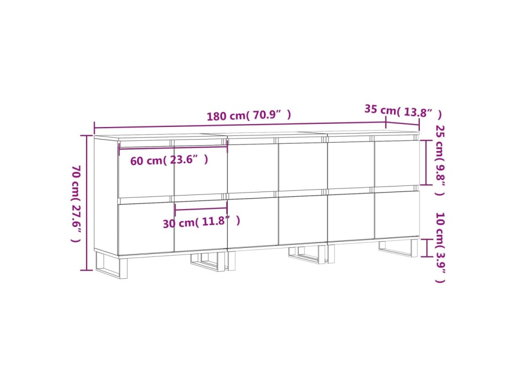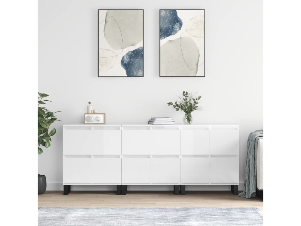 Příborníky 3 ks bílé s vysokým leskem kompozitní dřevo