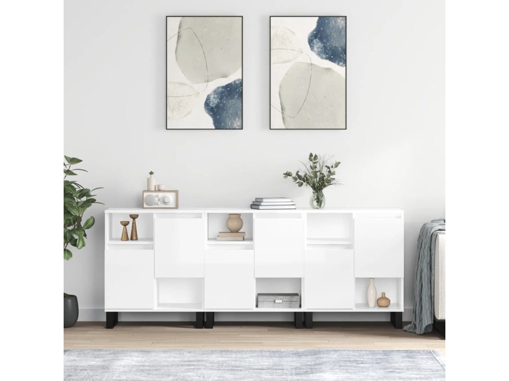 Příborníky 3 ks bílé s vysokým leskem kompozitní dřevo