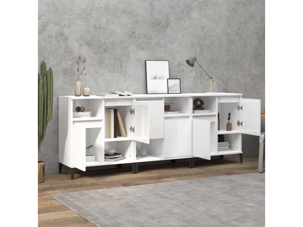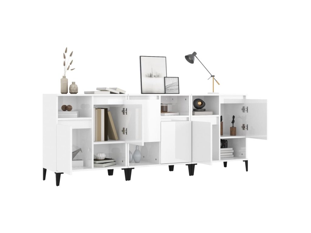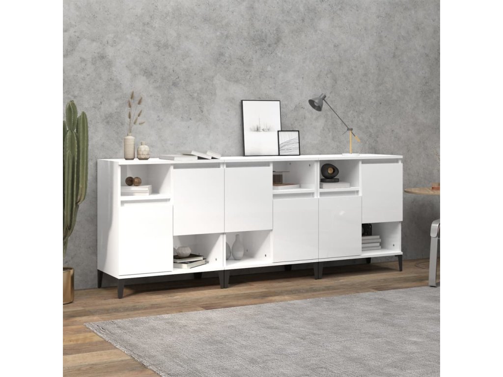Příborníky 3 ks bílé vysoký lesk 60x35x70 cm kompozitní dřevo