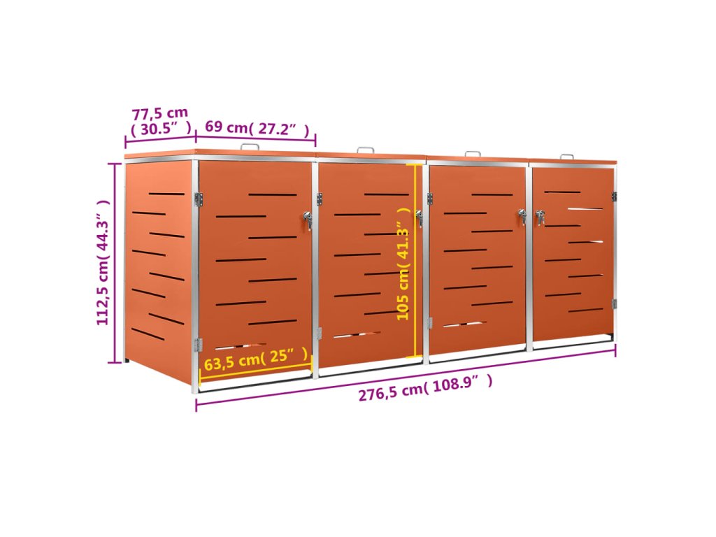 Přístřešek na čtyři popelnice 276,5x77,5x112,5 cm nerezová ocel