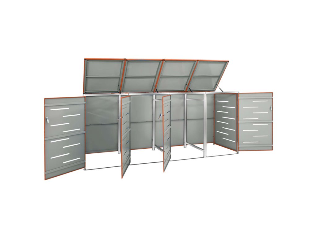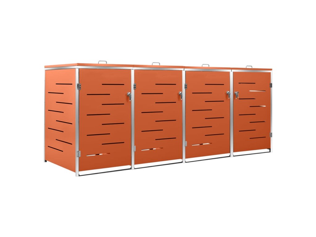Tento přístřešek na popelnice je vyroben z pozinkovaného ocelového panelu a rámu z nerezové oceli, takže je mimořádně robustní a odolný proti korozi. Dutá konstrukce umožňuje cirkulaci vzduchu a zabraňuje, aby v popelnicích vznikal nepříjemný zápach. Uzamykací systém zároveň zajišťuje bezpečné uložení odpadků. Praktické víko a pružiny navíc usnadňují vkládání a vyjímání popelnic.