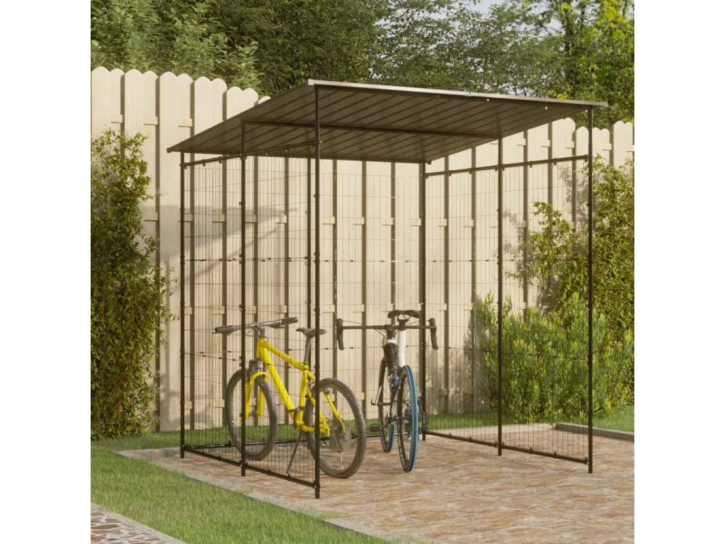 Tento přístřešek na kolo je vyroben z kovu a oceli s práškovým nástřikem, takže je odolný proti korozi, robustní a dlouho vydrží. Střecha je nakloněná, aby poskytovala dodatečnou ochranu vašich strojů před deštěm a přímým slunečním zářením.