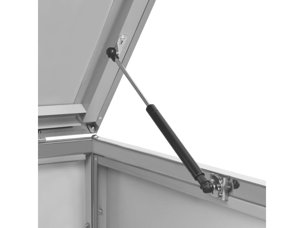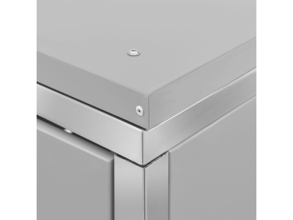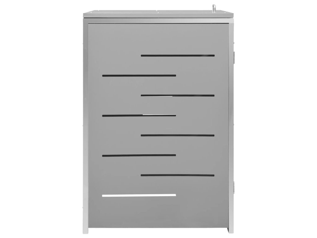 Tento přístřešek na popelnice je vyroben z pozinkovaného ocelového panelu a rámu z nerezové oceli, takže je mimořádně robustní a odolný proti korozi. Dutá konstrukce umožňuje cirkulaci vzduchu a zabraňuje, aby v popelnicích vznikal nepříjemný zápach. Uzamykací systém zároveň zajišťuje bezpečné uložení odpadků. Praktické víko a pružiny navíc usnadňují vkládání a vyjímání popelnic.