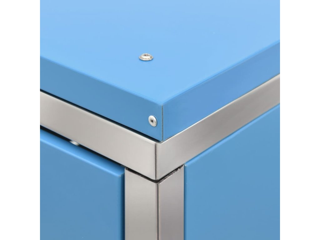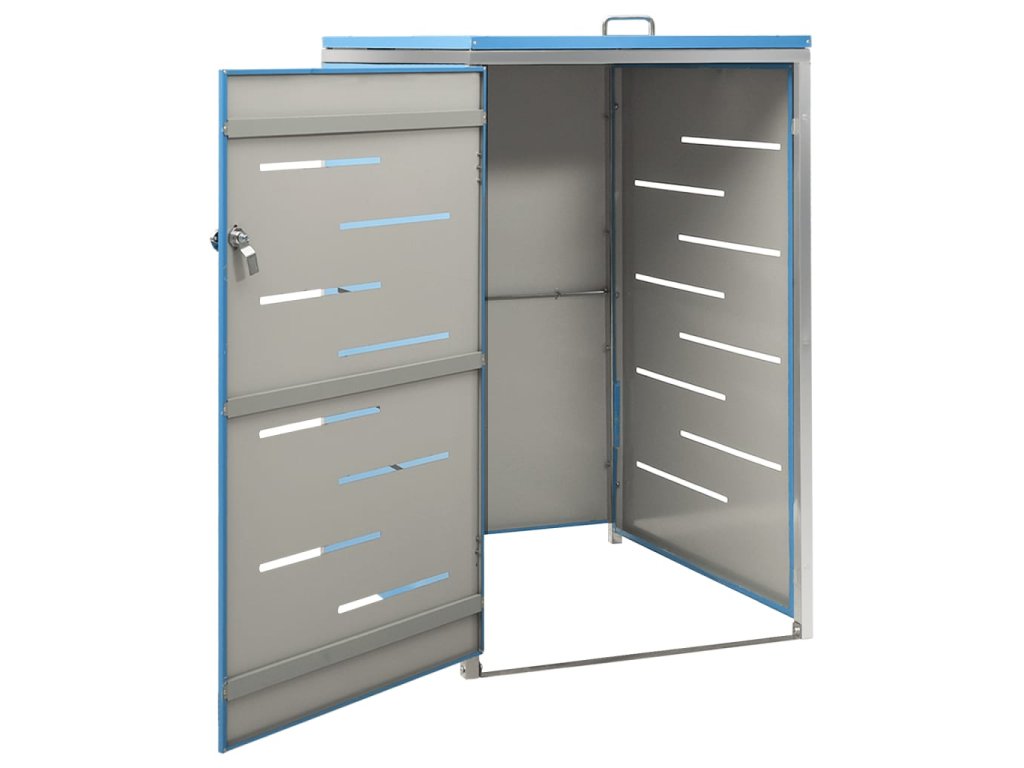 Tento přístřešek na popelnice je vyroben z pozinkovaného ocelového panelu a rámu z nerezové oceli, takže je mimořádně robustní a odolný proti korozi. Dutá konstrukce umožňuje cirkulaci vzduchu a zabraňuje, aby v popelnicích vznikal nepříjemný zápach. Uzamykací systém zároveň zajišťuje bezpečné uložení odpadků. Praktické víko a pružiny navíc usnadňují vkládání a vyjímání popelnic.