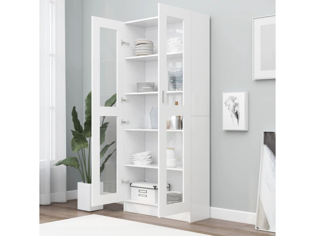 Prosklená skříň bílá 82,5 x 30,5 x 185 cm kompozitní dřevo