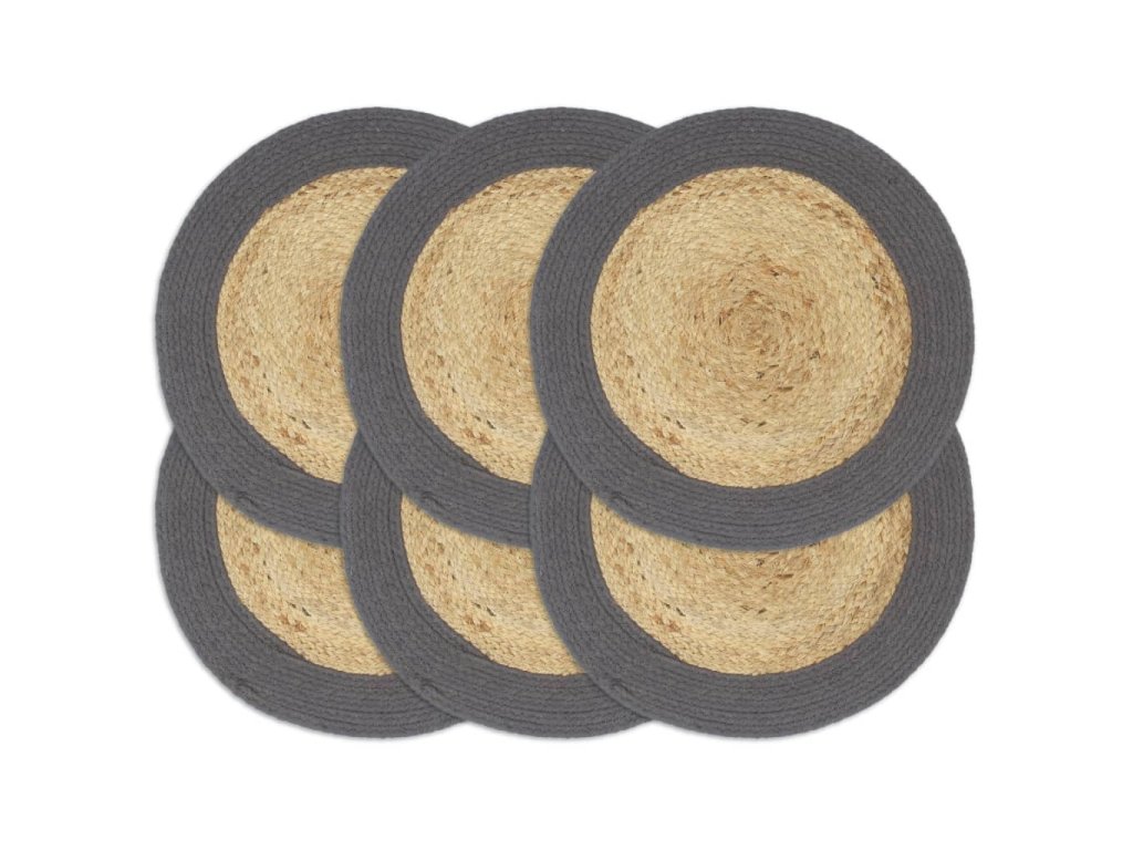 Prostírání 6 ks přírodní a antracitové 38 cm juta a bavlna