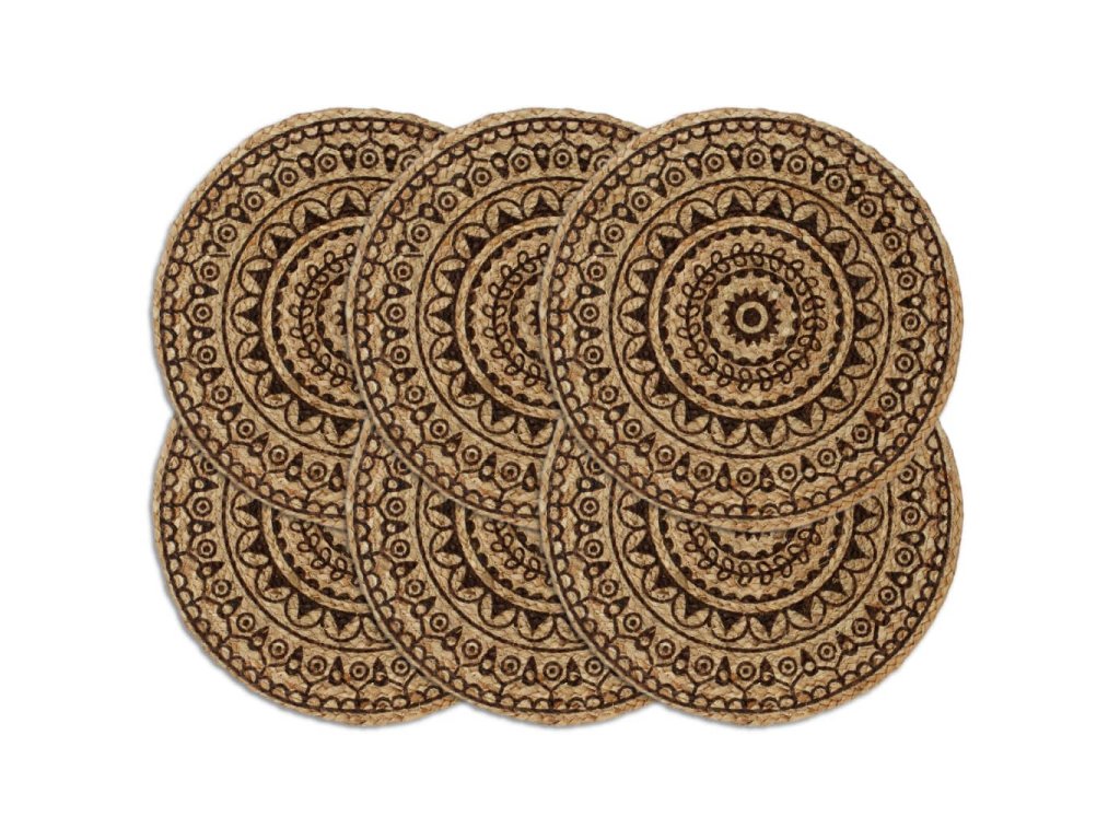 Prostírání 6 ks tmavě hnědé 38 cm kulaté juta
