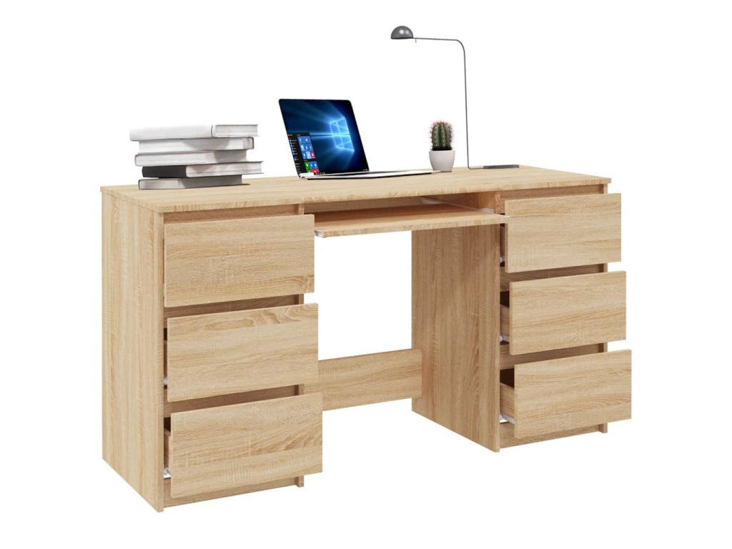 Počítačový stůl je vyrobený z kvalitního kompozitního dřeva, je tudíž robustní, odolný a vydrží vám dlouho sloužit. Skvěle se hodí do menších kanceláří, na kolej, do bytů s omezeným prostorem nebo zkrátka všude, kde chcete co nejefektivněji využít dostupné místo. Najdete v něm také 6 prostorným zásuvek na ukládání knih a dokumentů.