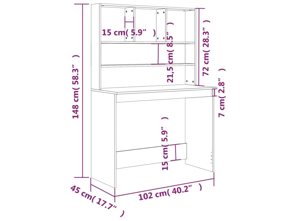 Psací stůl s policemi kouřový dub 102 x 45 x 148 cm kompozit