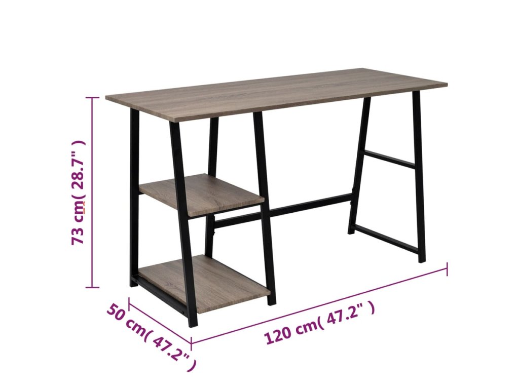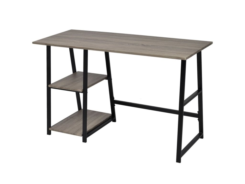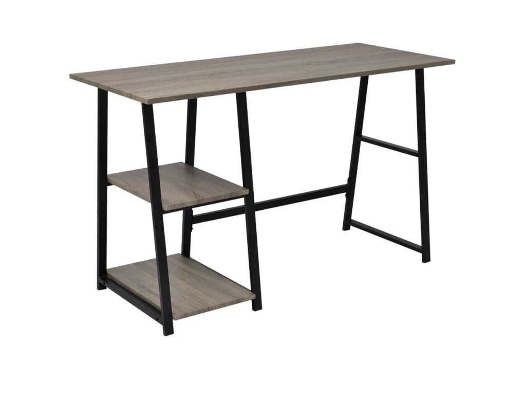 Tento počítačový stůl, vyrobený z vysoce kvalitního MDF s robustním kovovým rámem ve tvaru písmene A, je odolný a stabilní, stylový a atraktivní. Se dvěma robustními policemi na levé straně je tento psací stůl velmi praktický pro ukládání kancelářských potřeb nebo vystavování drobností.