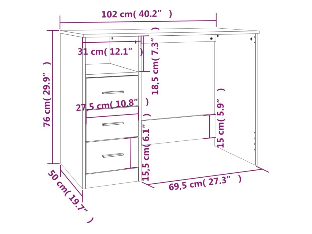 Psací stůl se zásuvkami bílý 102 x 50 x 76 cm kompozitní dřevo