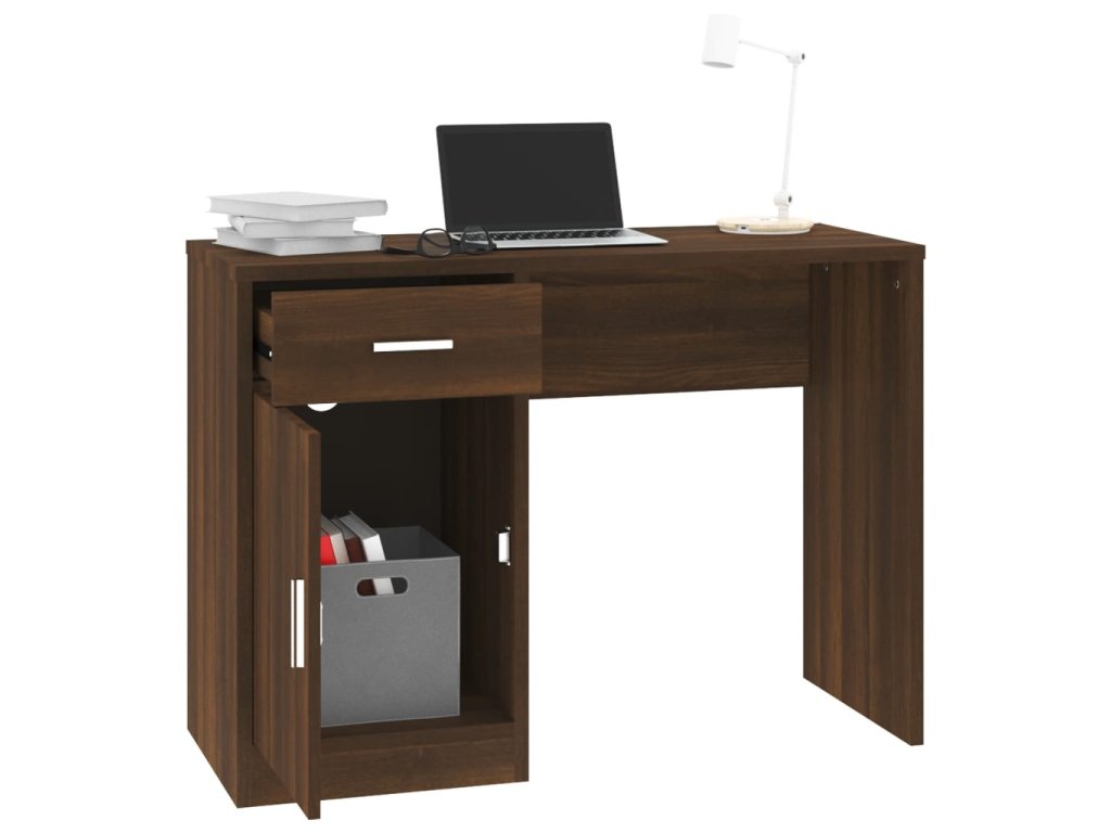 Psací stůl zásuvka a skříňka hnědý dub 100x40x73 cm kompozit