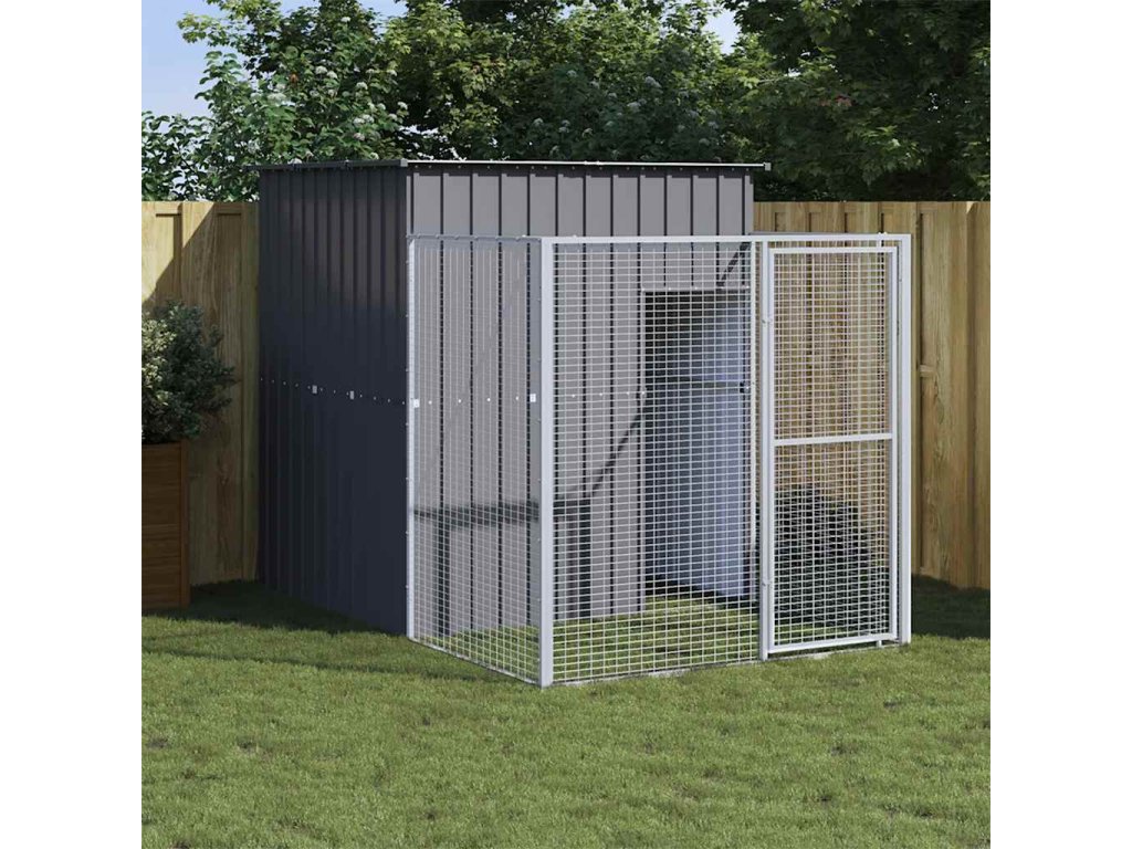 Psí bouda s výběhem antracitová 165x251x181 cm pozinkovaná ocel