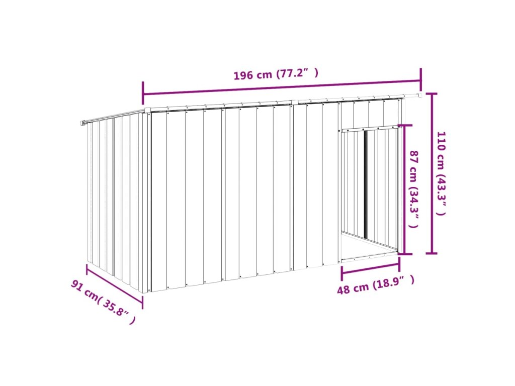 Psí bouda se střechou antracitová 196x91x110cm pozinkovaná ocel