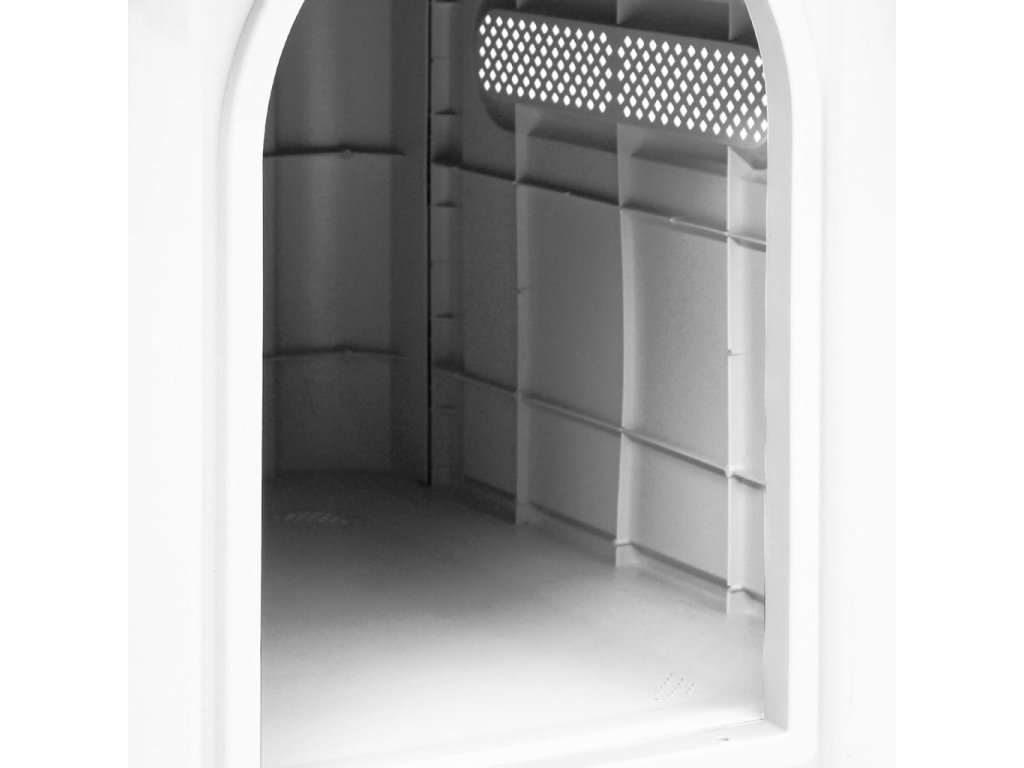 - Zvýšená podlaha: Konstrukce s vyšší podlahou zabraňuje protékání vody do psího přívodu a udržuje psí boudu vždy suchou a pohodlnou pro vaše mazlíčky.