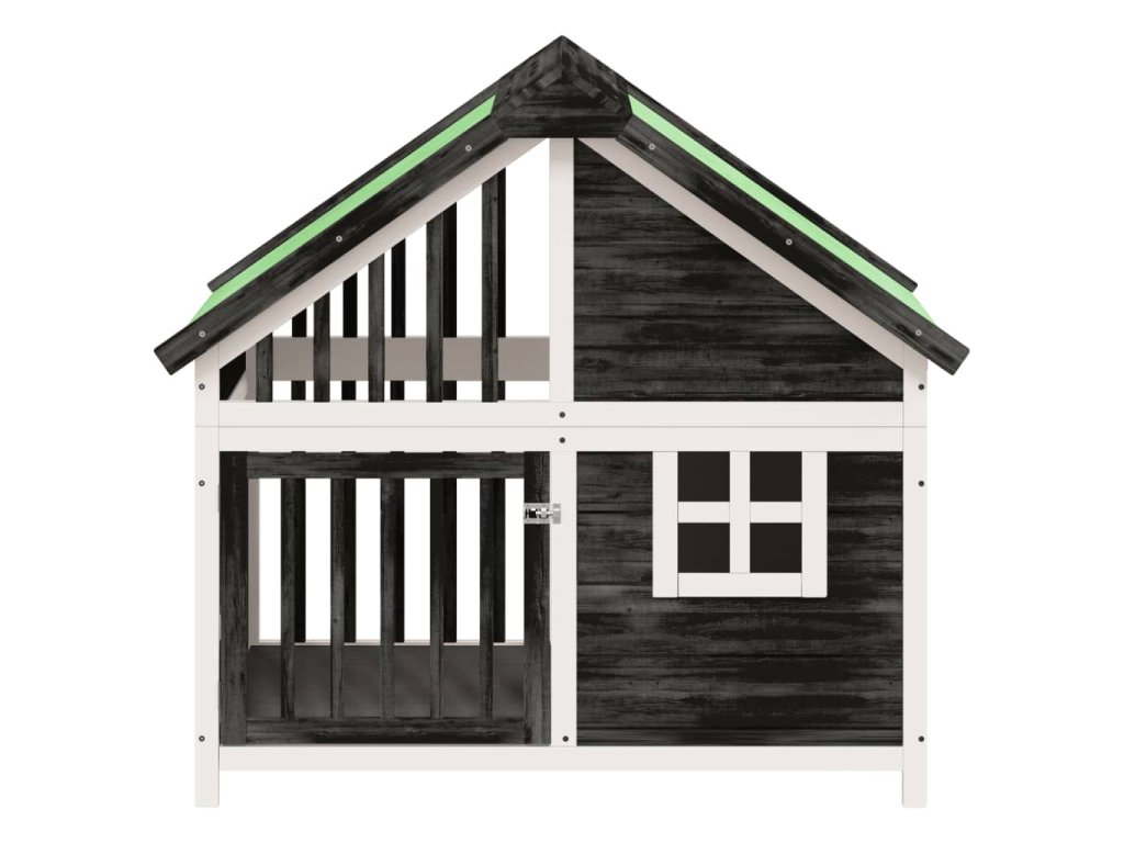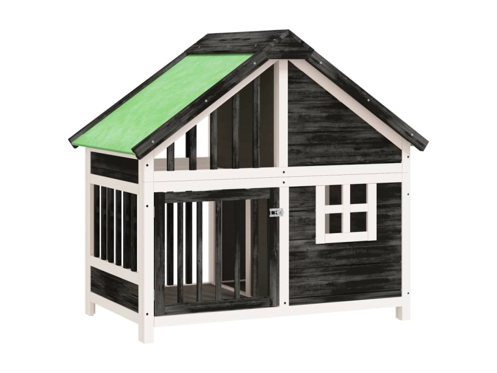 - Voděodolná střecha: Zelená voděodolná střecha boudy zajišťuje psům teplé, suché a pohodlné prostředí.