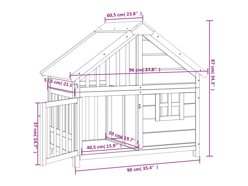 Psí bouda šedá 96 x 60,5 x 87 cm masivní borové dřevo