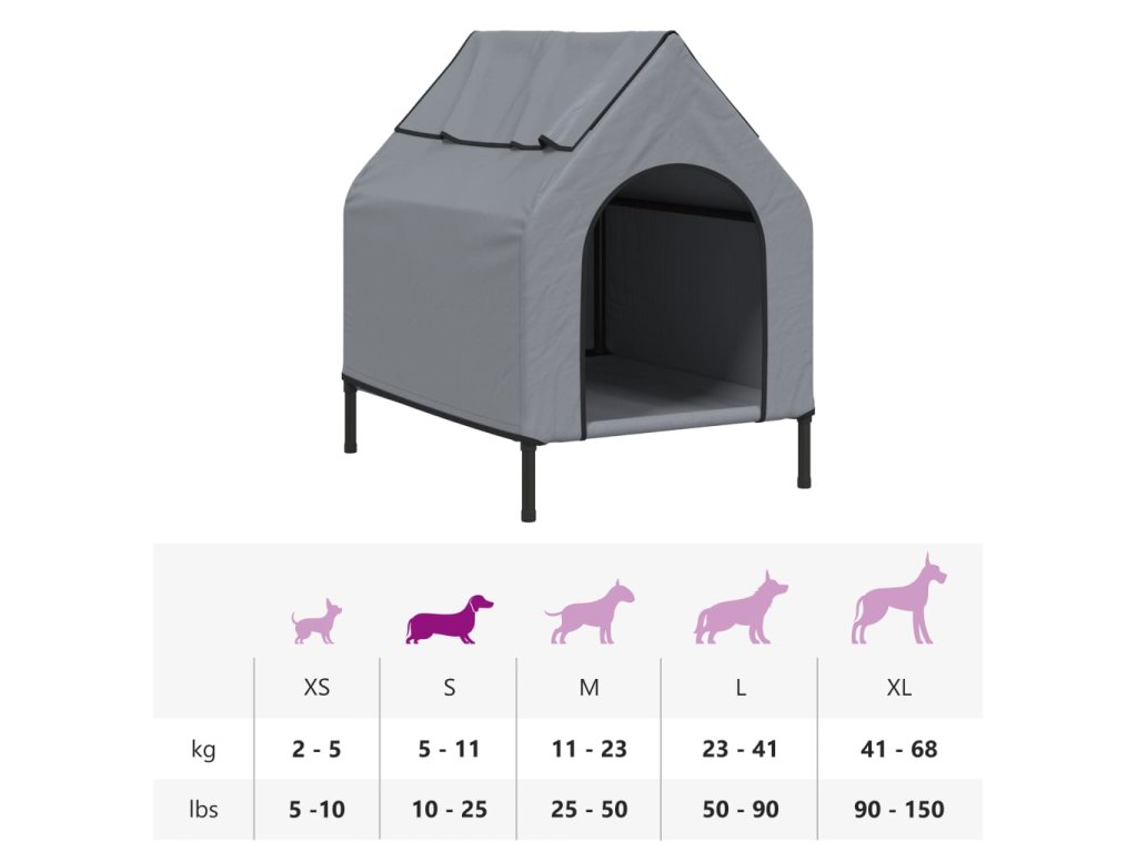 - Vyvýšený design: Vyvýšená bouda chrání psa před špínou a vlhkostí a poskytuje mu pohodlný suchý povrch na spaní.