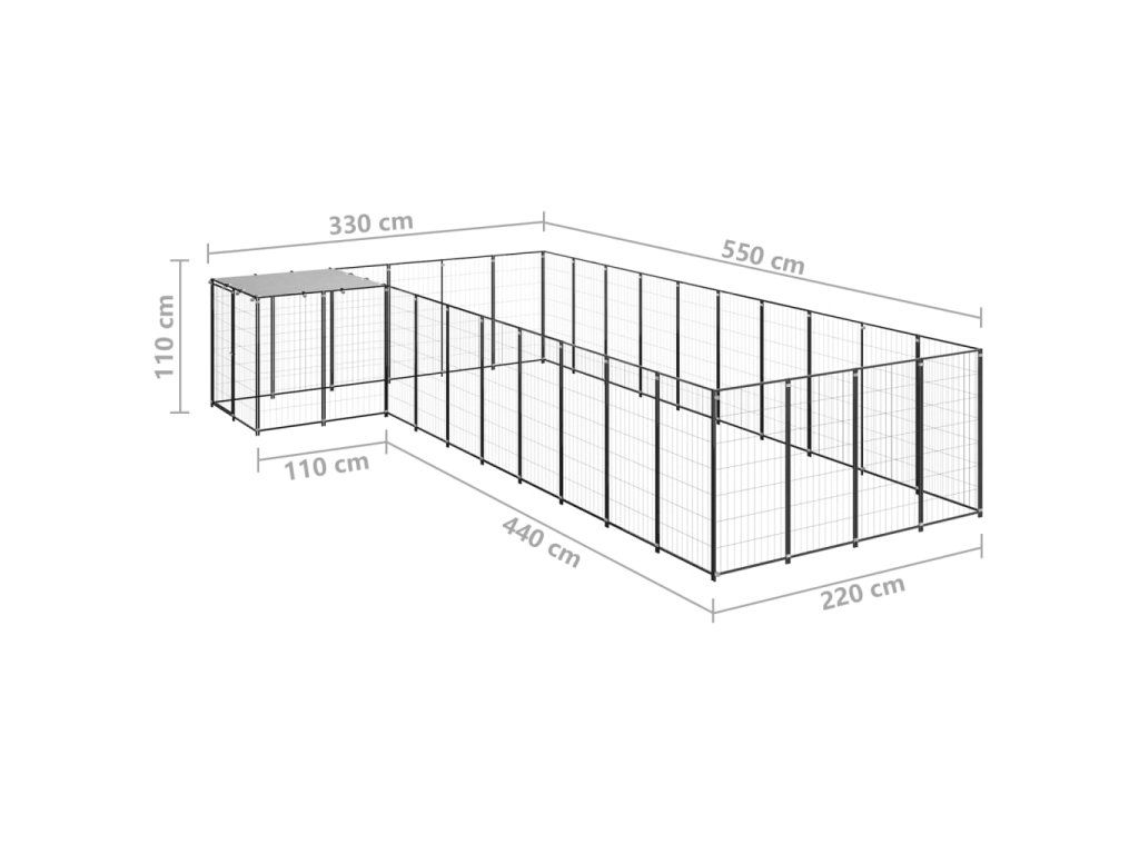 Psí kotec černý 13,31 m² ocel 3082238