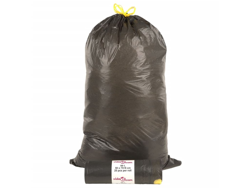 Pytle na odpadky se stahovacími šňůrkami 250 ks černé 60 l