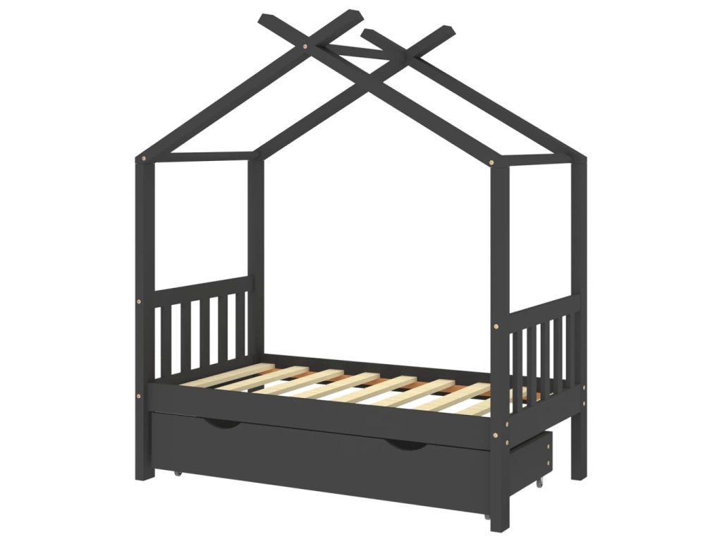 Rám dětské postele se zásuvkou tmavě šedý borovice 70 x 140 cm