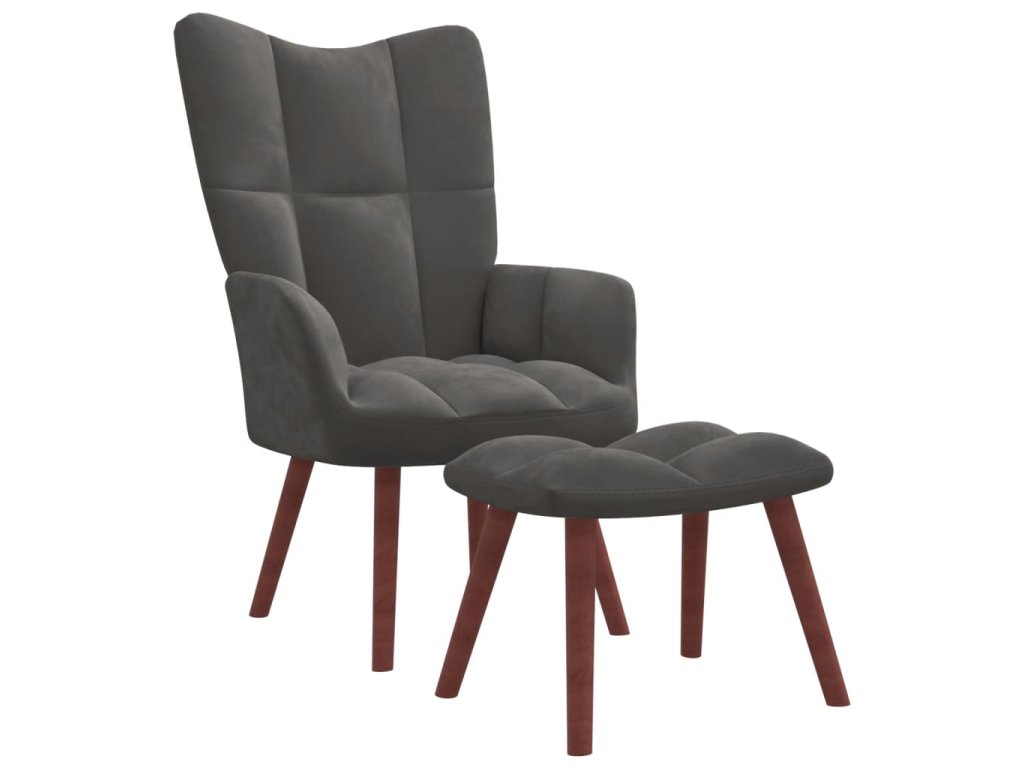 Relaxační křeslo se stoličkou tmavě šedé samet