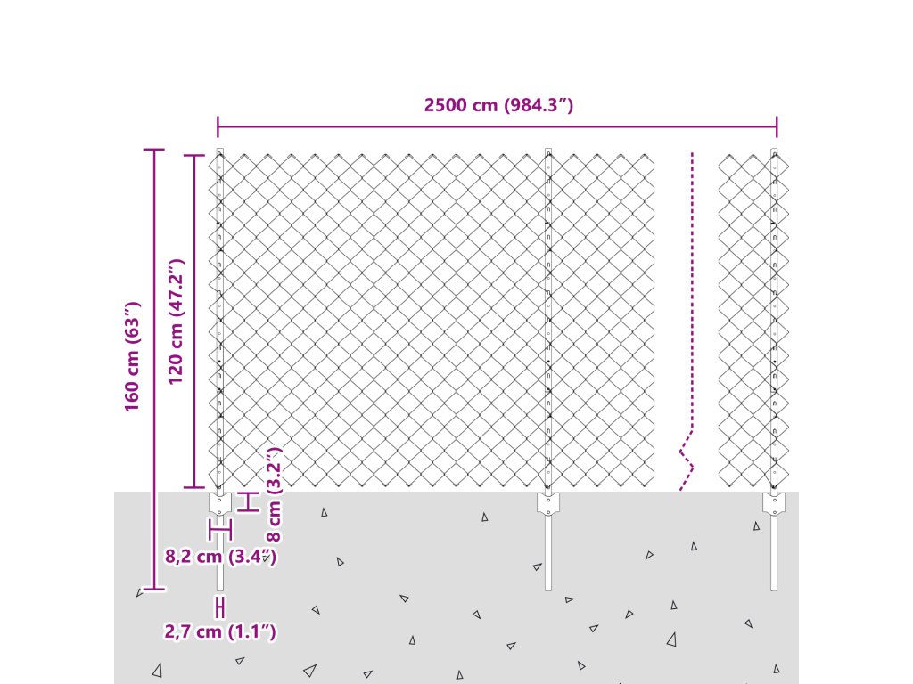 Plot s sloupkem Šedá 1,2 x 25 m Ocel a PVC