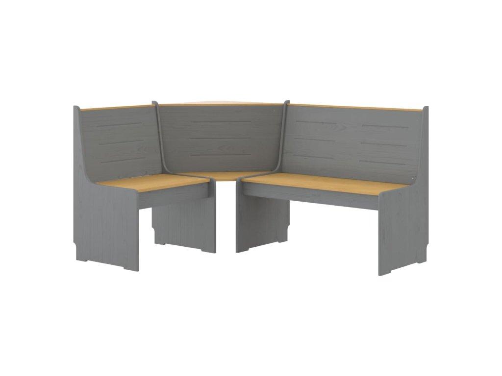 Rohová lavice REINE 151 cm masivní borové medově hnědá a šedá