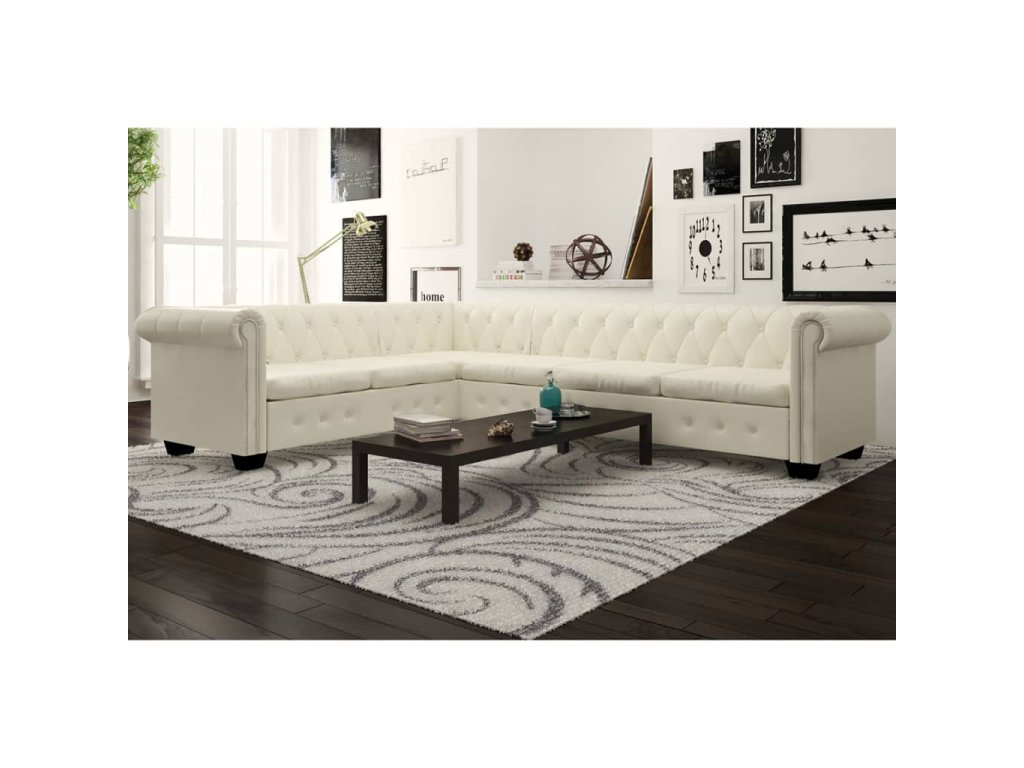 Rohová pohovka Chesterfield 6místná umělá kůže bílá