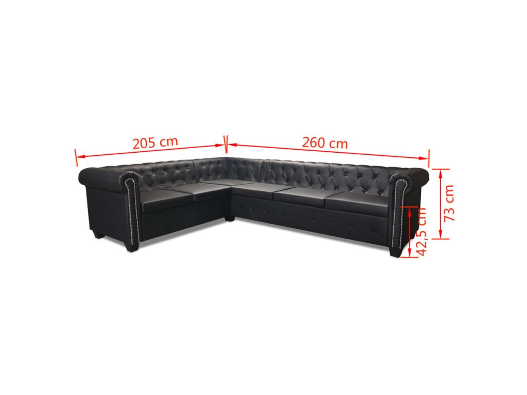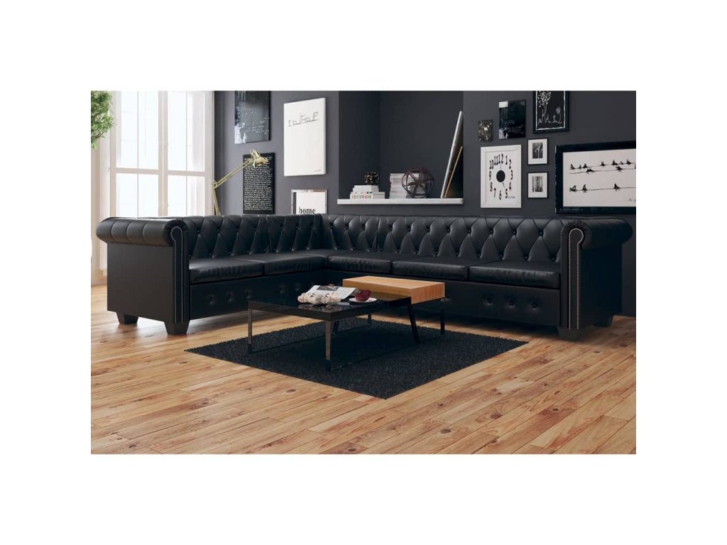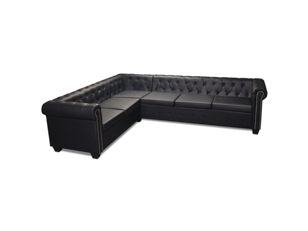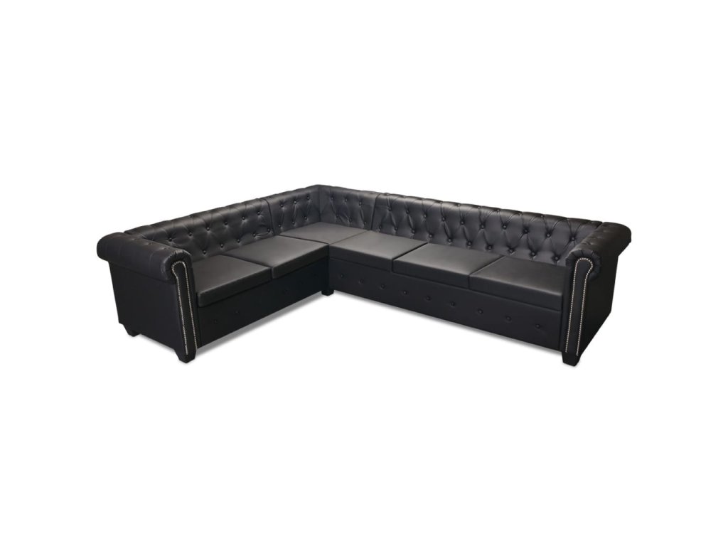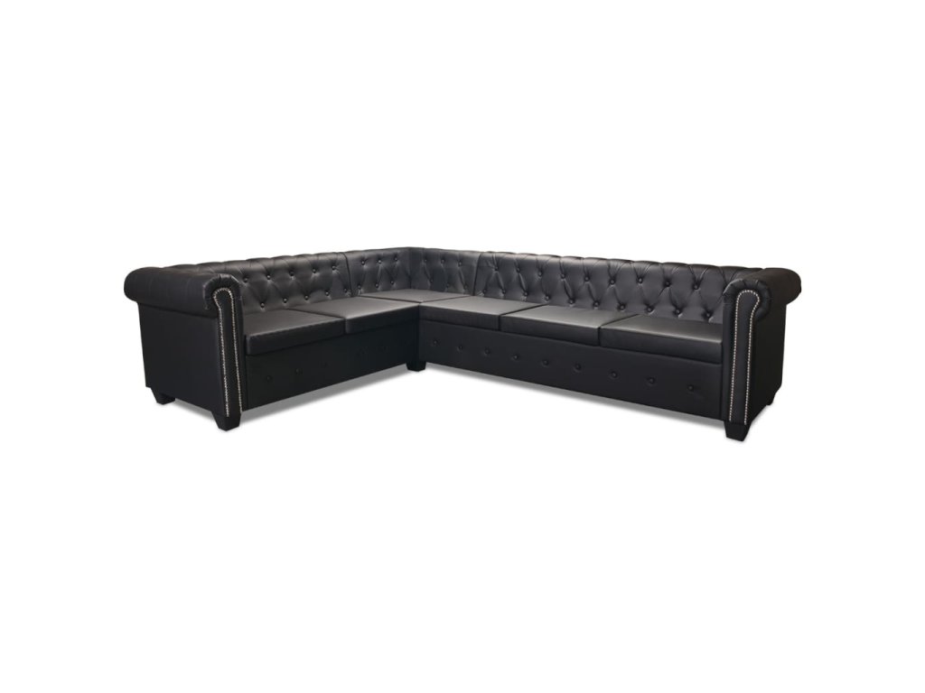 Rohová pohovka Chesterfield 6místná umělá kůže černá