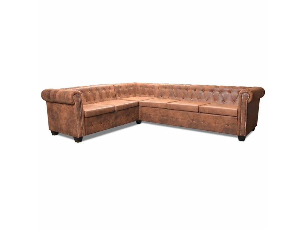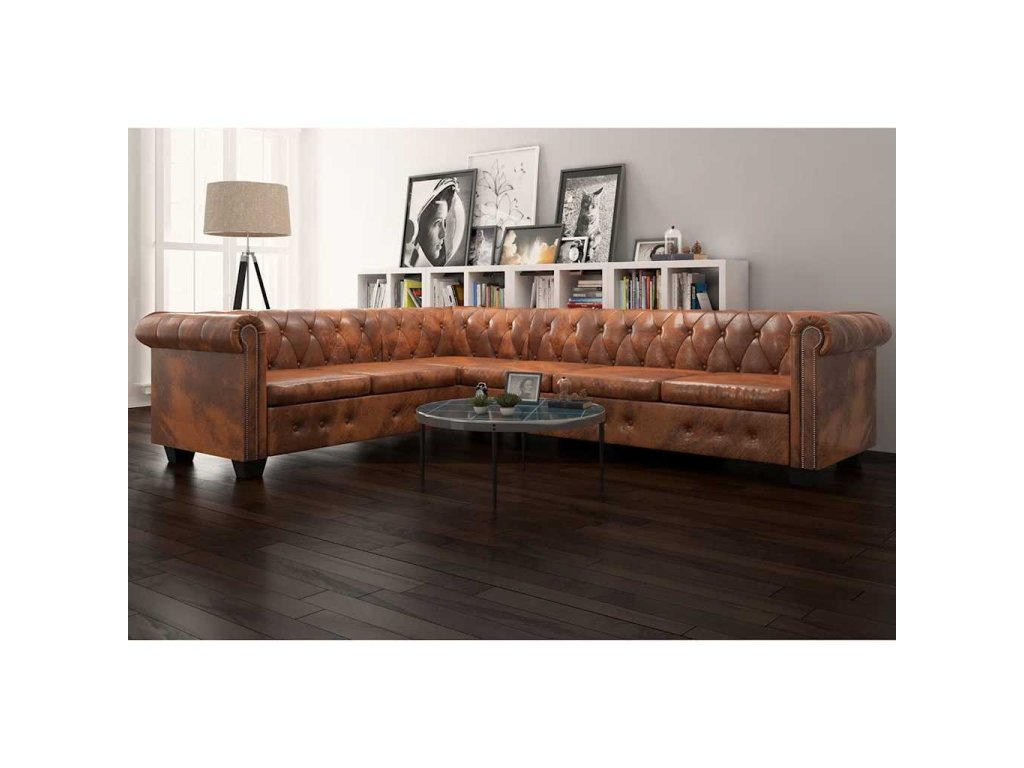 Rohová pohovka Chesterfield 6místná umělá kůže hnědá