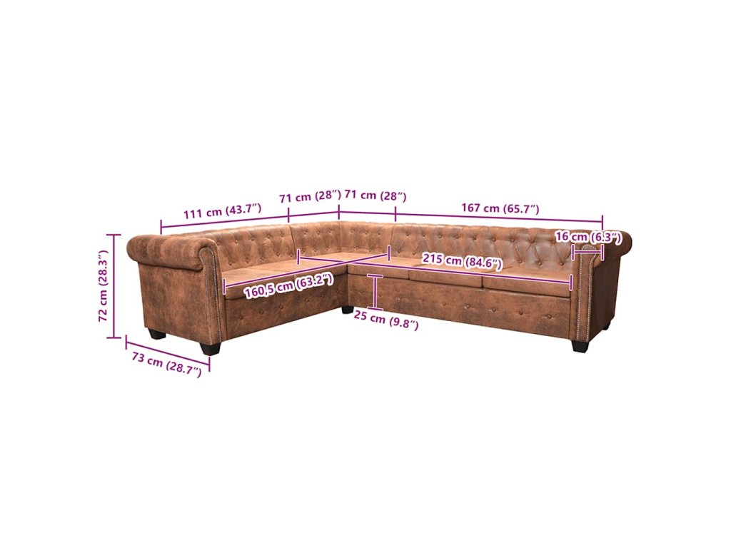 Tato Chesterfield 6místná rohová pohovka je dokonalou kombinací pohodlí a sofistikovanosti. Dokonale se hodí do jakéhokoli bydlení nebo kanceláře.