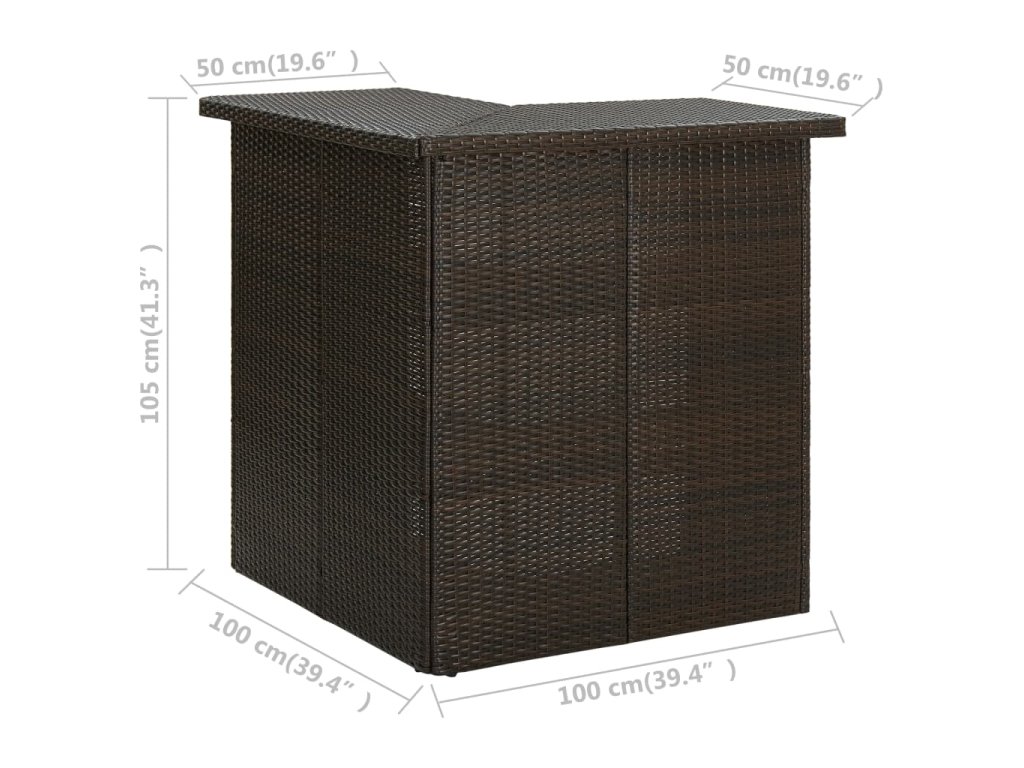 Rohový barový stolek hnědý 100 x 50 x 105 cm polyratan