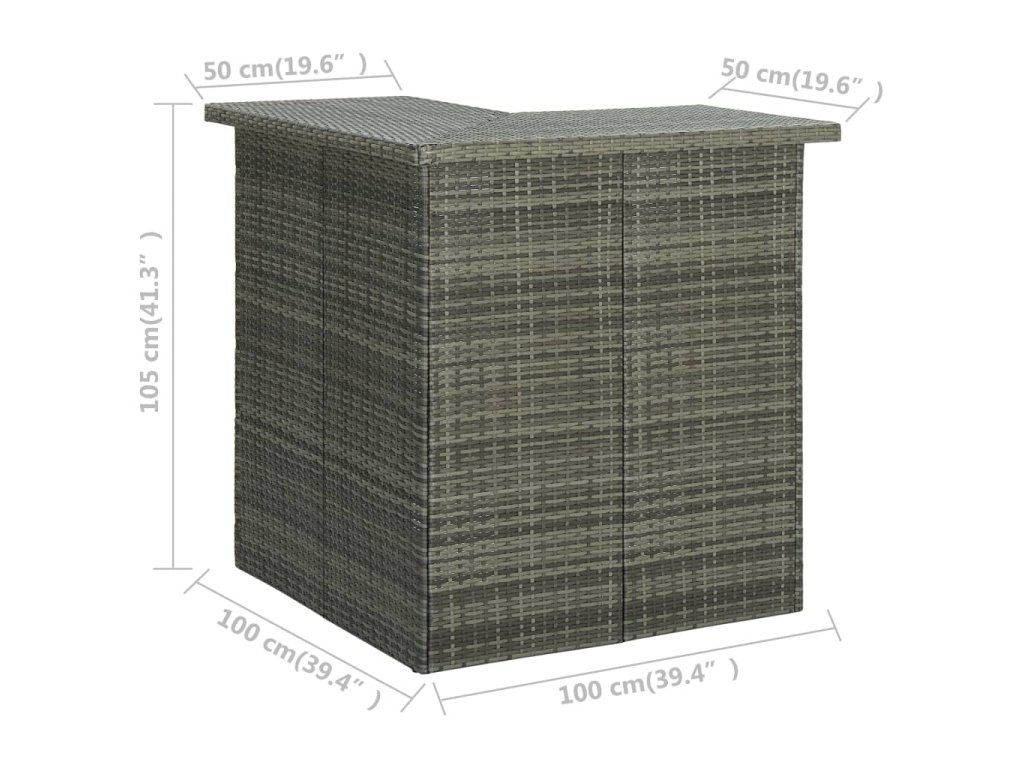 Rohový barový stolek šedý 100 x 50 x 105 cm polyratan