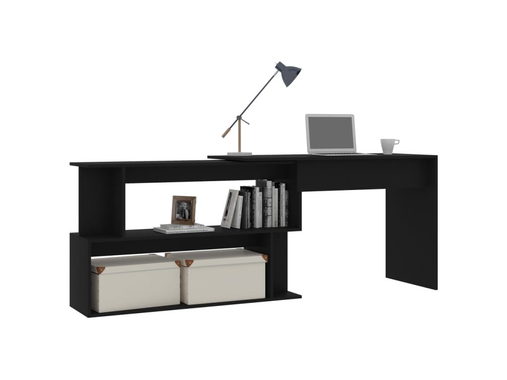 Rohový psací stůl černý 200 x 50 x 76 cm dřevotříska