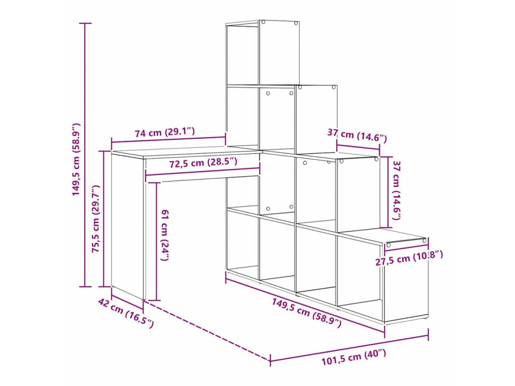 Rohový psací stůl s policí Šedá sonoma 101,5 x 149,5 x 149,5 cm