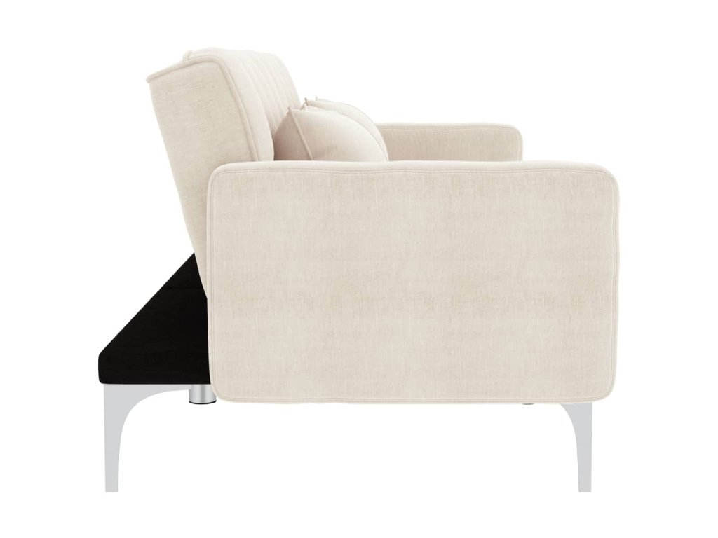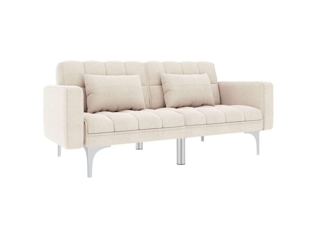 Dřevěný rám a kovové nohy jsou zárukou bytelnosti, zatímco silné polstrování přináší velký komfort. Rozkládací pohovka se dá snadno a rychle rozložit na lůžko a zase složit nazpět. Jako pohovka vám umožní vybrat si ze 3 různých poloh opěradla. Součástí balení jsou také dva polštáře pro ještě pohodlnější sezení.