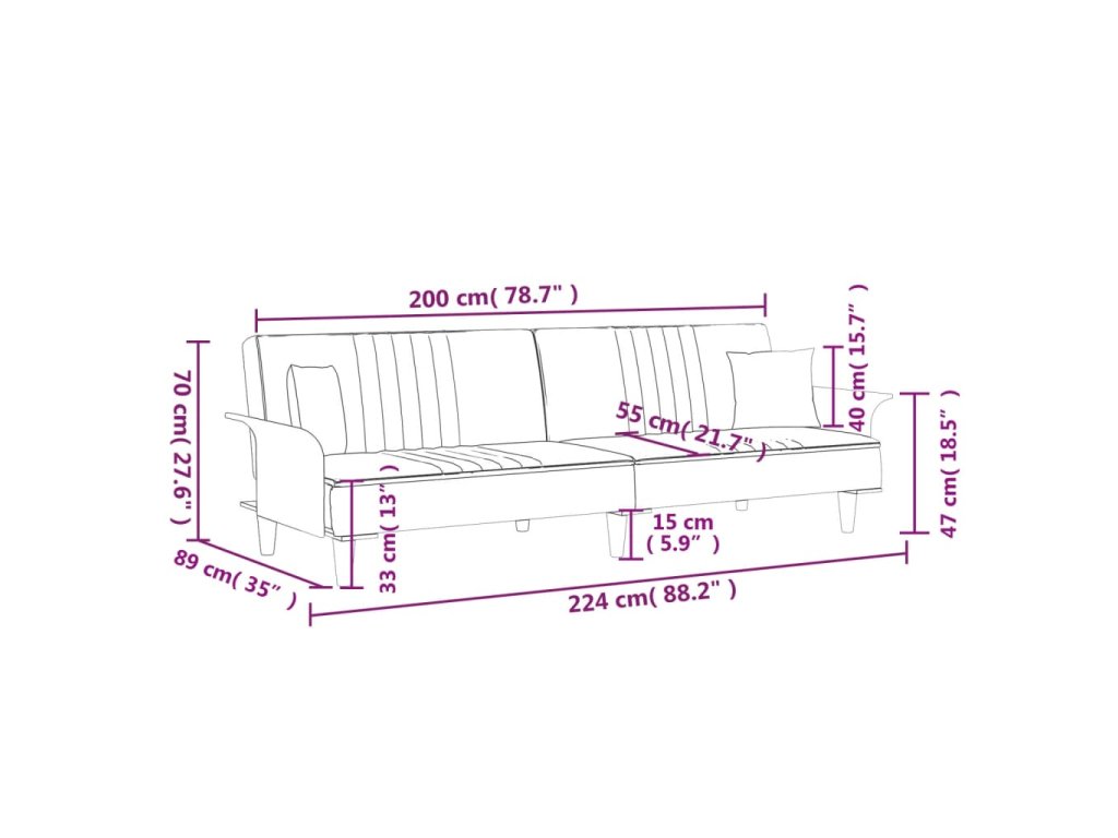 - Nastavitelné opěradlo: Dvě samostatné části opěradla této rozkládací pohovky můžete sklopit částečně nebo zcela dolů, čímž si vytvoříte ideální místo pro zdřímnutí nebo postel pro dva.