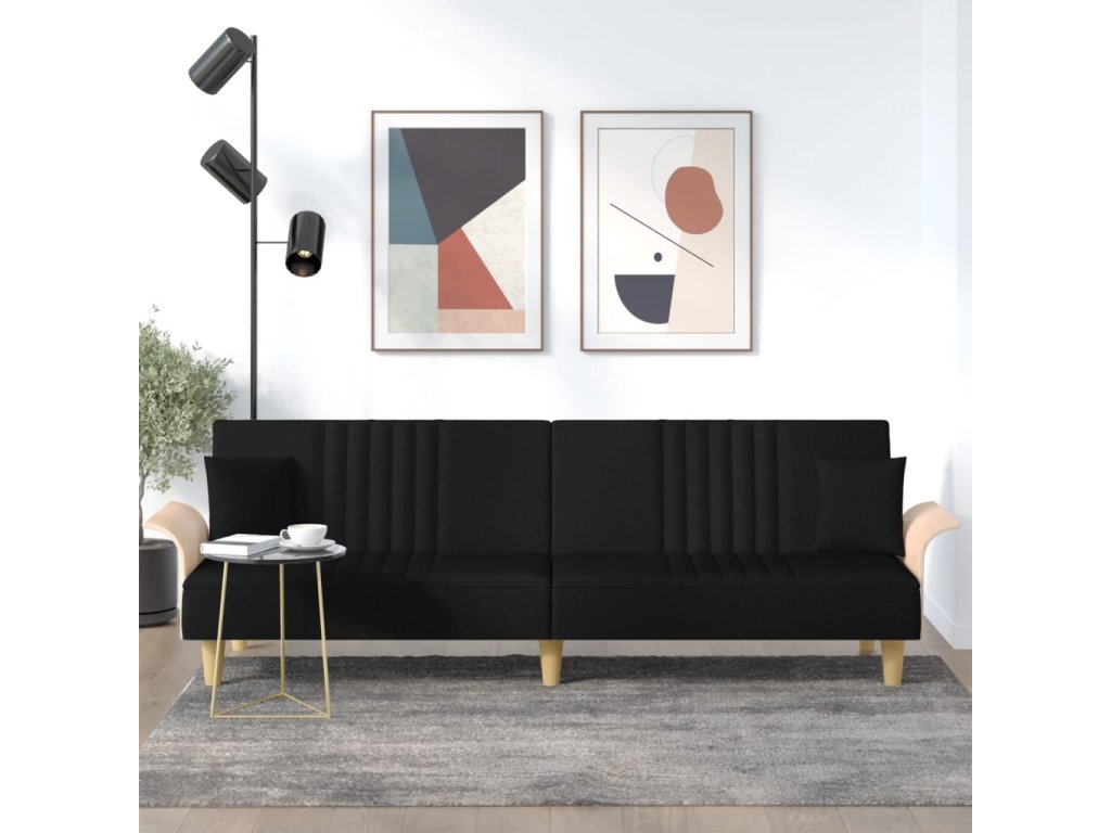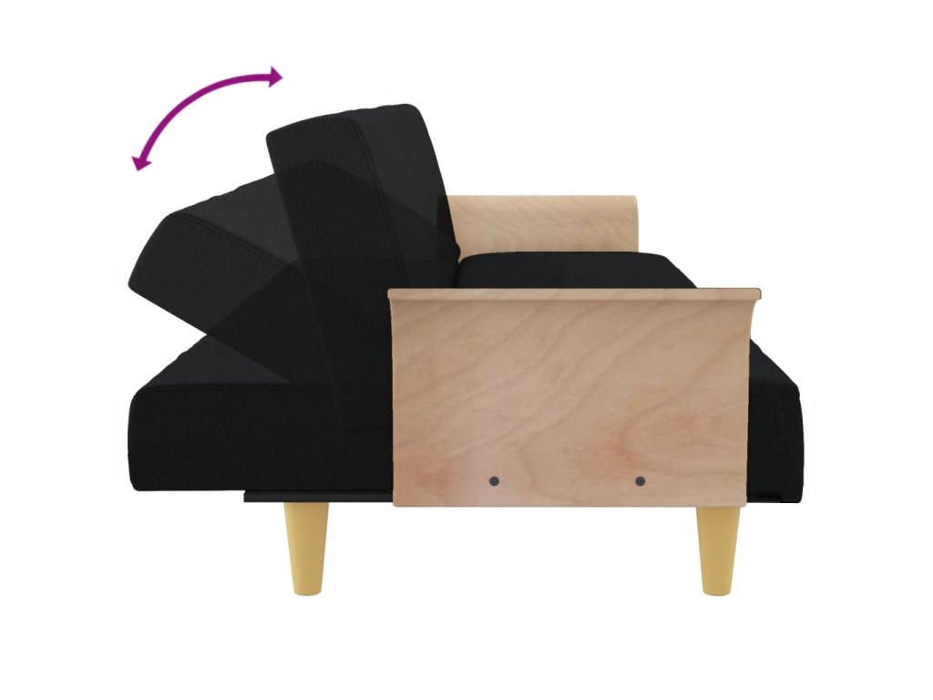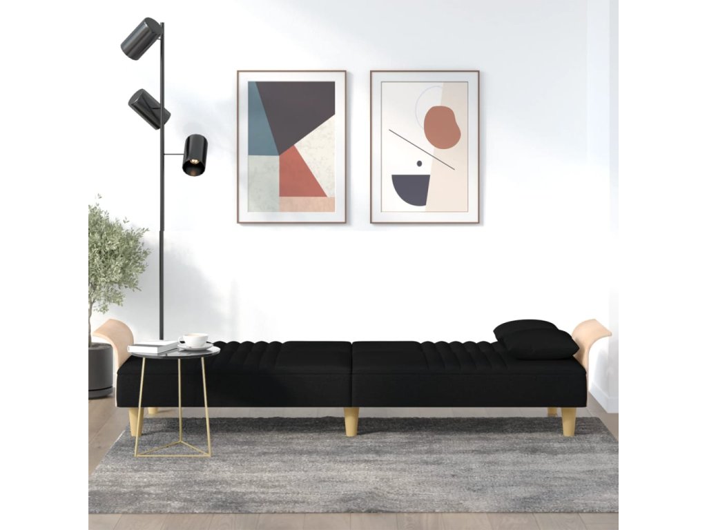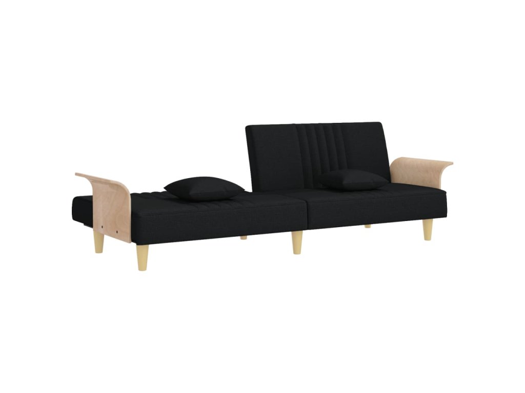 Rozkládací pohovka s područkami černá textil