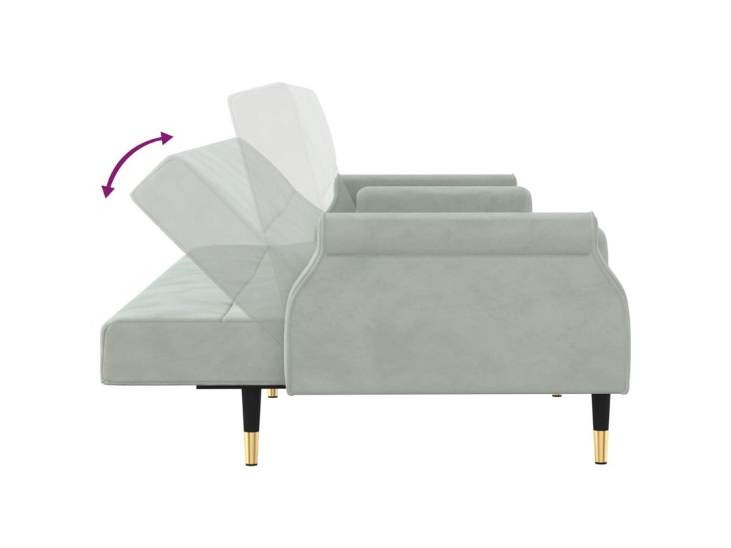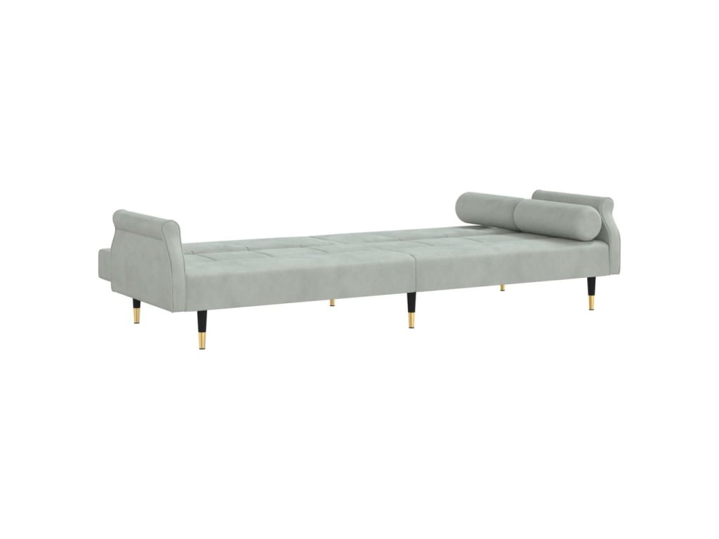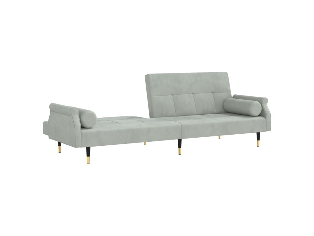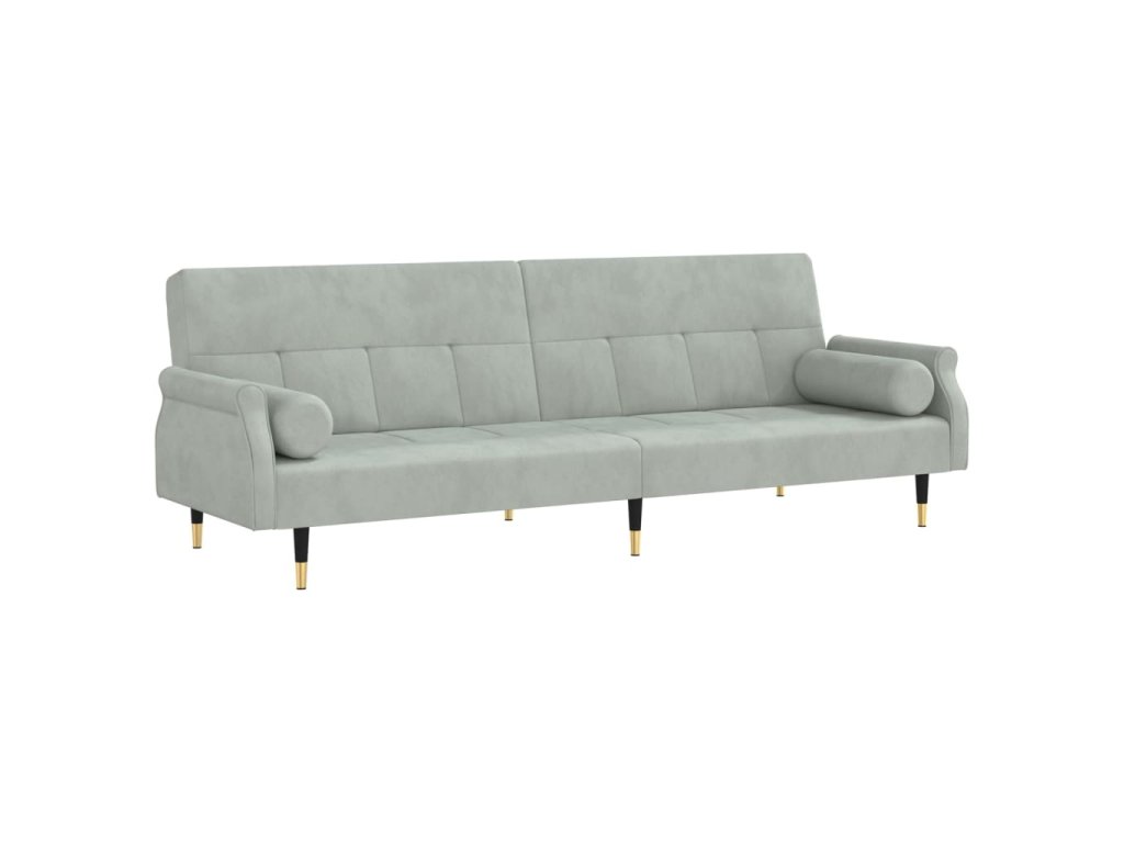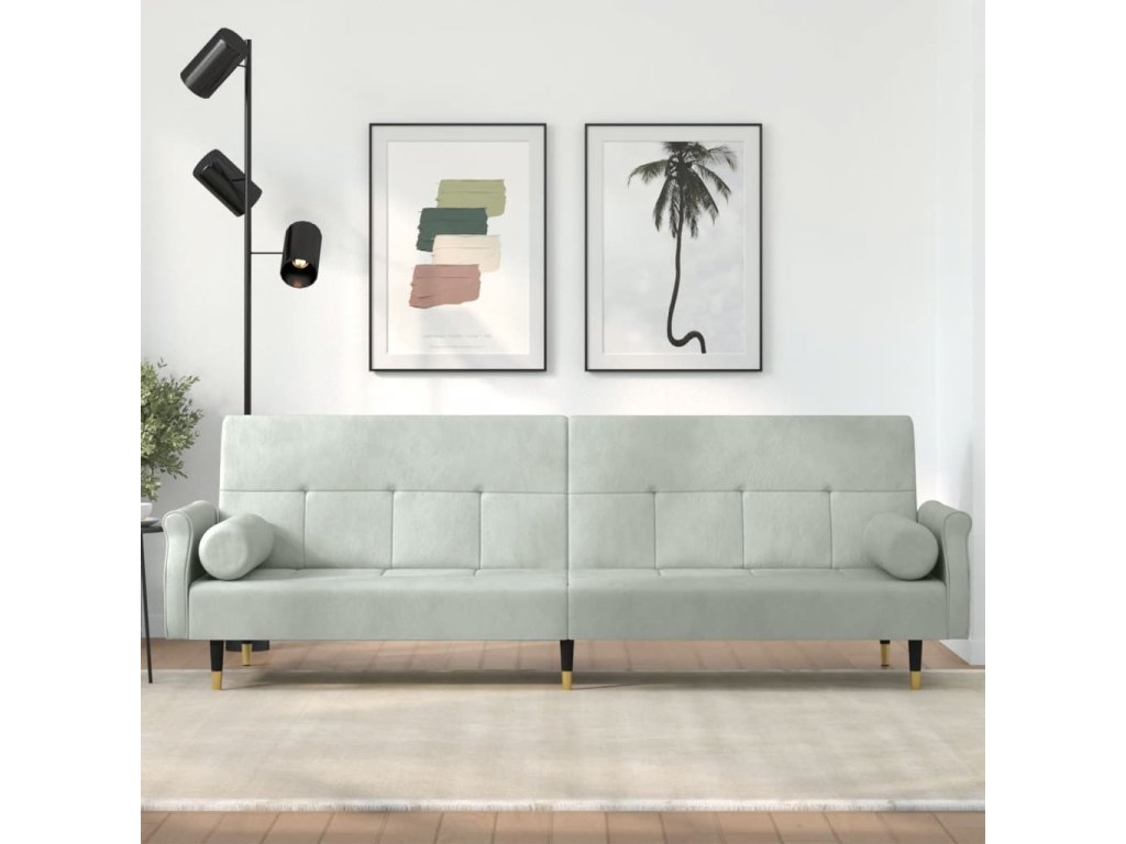 Rozkládací pohovka s poduškami světle šedá samet