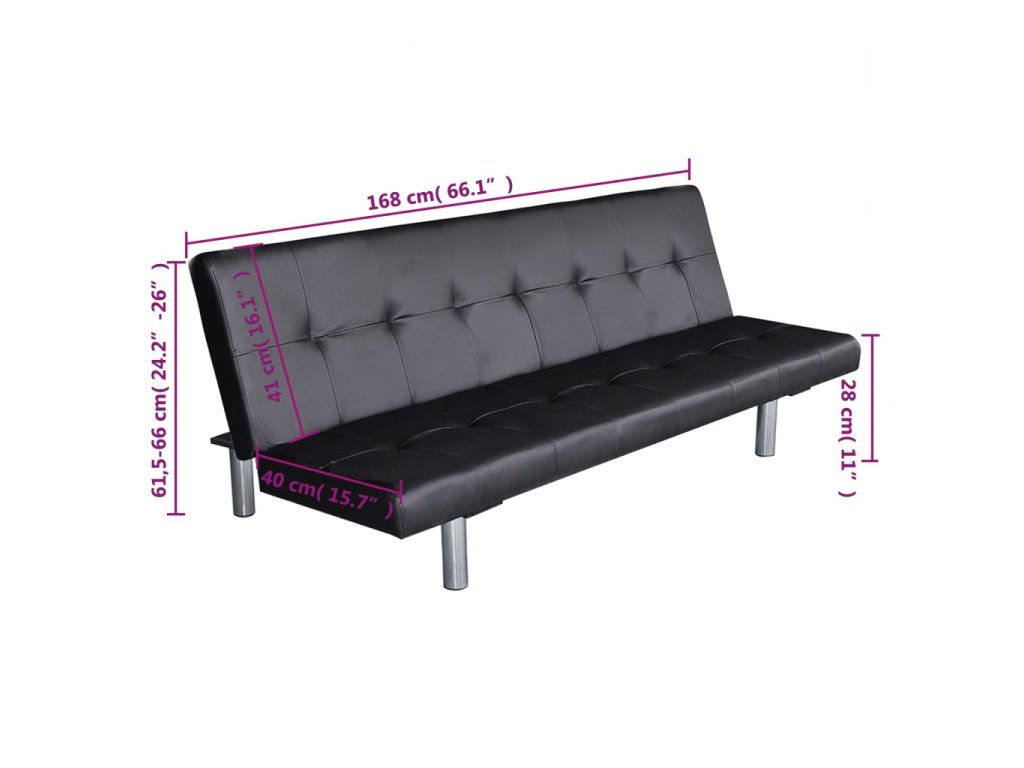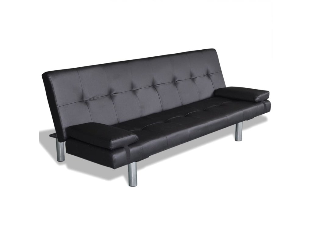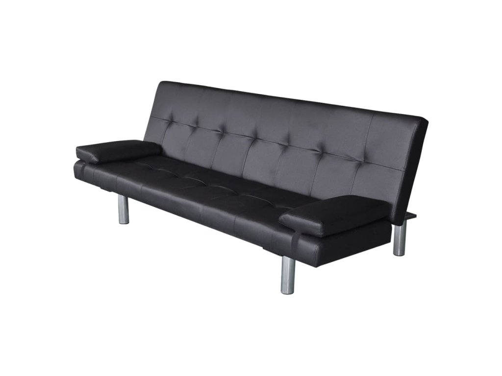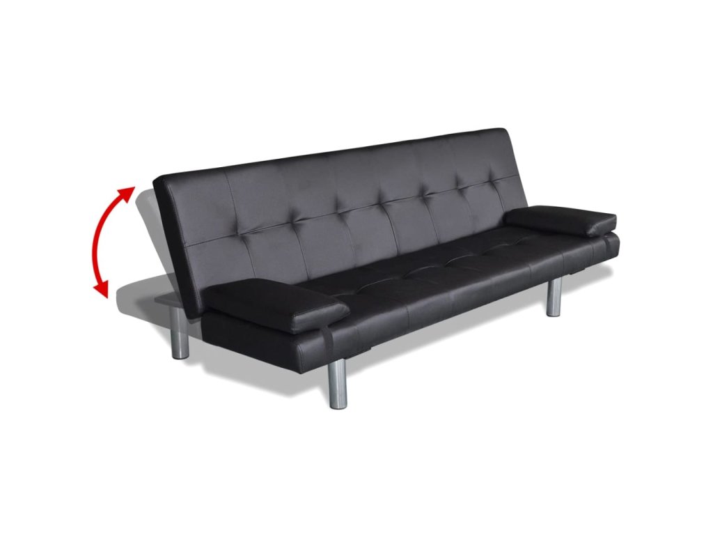 Rozkládací pohovka se 2 polštáři umělá kůže polohovatelná černá