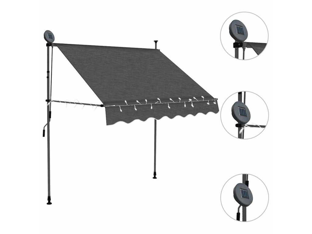 Ručně zatahovací markýza s LED světlem 100 cm antracitová