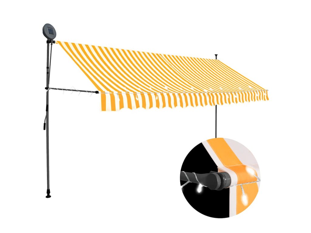 Ručně zatahovací markýza s LED světlem 350 cm bílooranžová