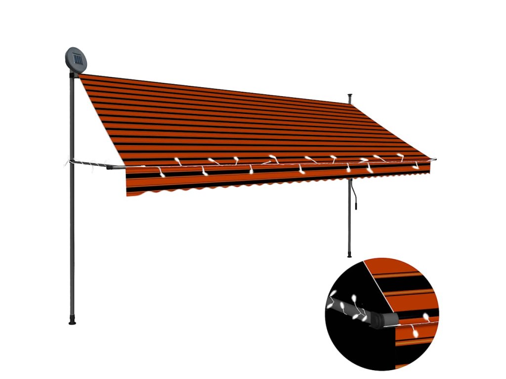 Ručně zatahovací markýza s LED světlem 350 cm oranžovo-hnědá