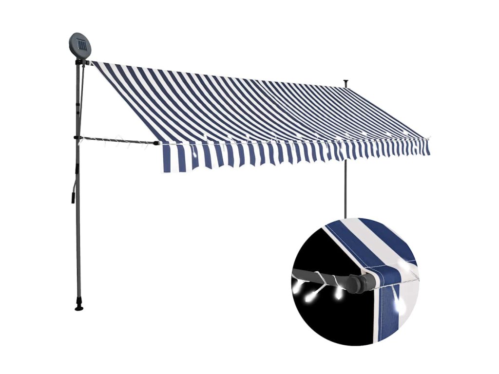 Ručně zatahovací markýza s LED světlem 400 cm modrobílá