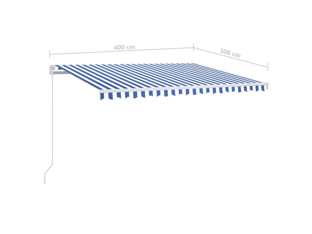 Ručně zatahovací markýza s LED světlem 400x300 cm modrá a bílá