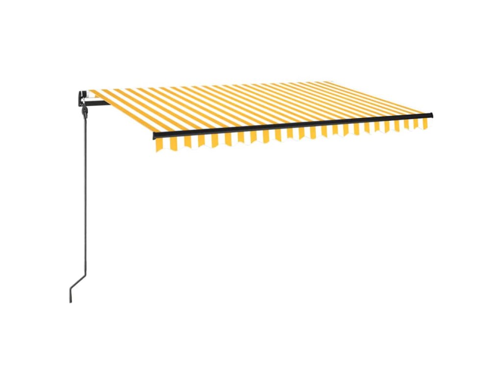 Tato markýza má hliníkový rám s práškovým nástřikem, který nerezaví, je lehký, ale přitom je mimořádně robustní. Zatahovací stříška je zhotovená z vysokohustotního polyesteru potaženého vrstvou PU, výborně tedy vzdoruje vodě i UV záření. Úhel a výšku si můžete navíc nastavit dle svých konkrétních potřeb. Markýzu snadno roztáhnete a zatáhnete pomocí dlouhé ruční kliky. A co víc, solární LED světla poskytují energeticky úsporné osvětlení v noci.