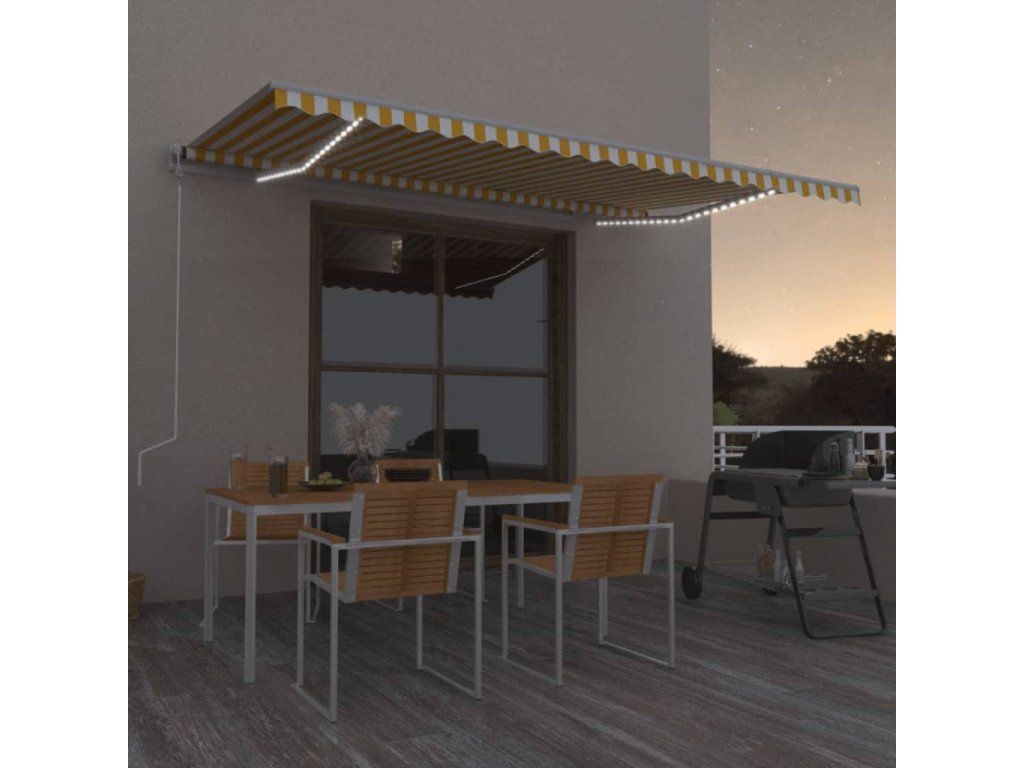 Ručně zatahovací markýza s LED světlem 500 x 350 cm žlutobílá 3069023